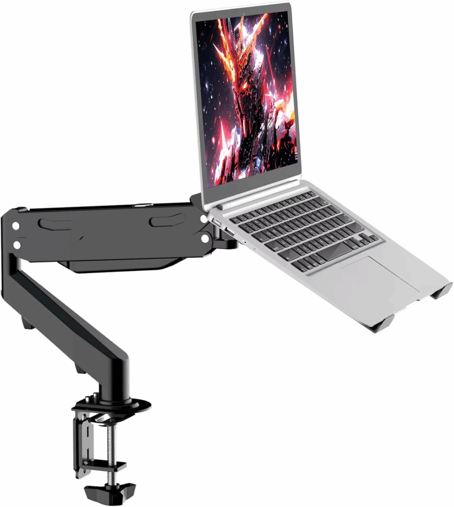 Gas Spring Monitor Laptop Stand Mount, 2-In-1 Adjustable Arm for 12-17″ Notebook & 13-32″ Screen, Holds 22Lbs