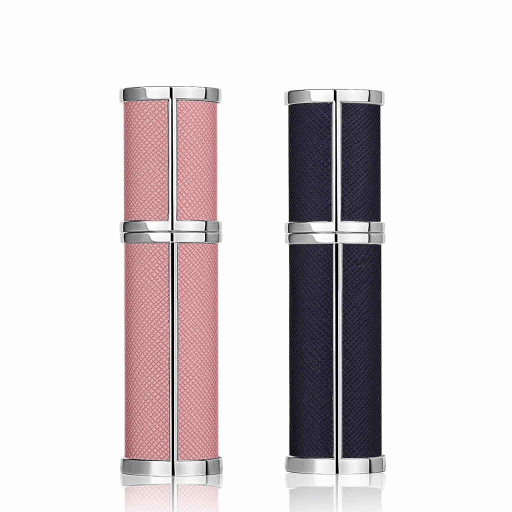 Refillable Perfume Bottle Portable Empty Atomizier Spayer for Perfume 5ML Luxury Leather Mini Scent Pump Bottle Blue and Pink Travel Cologne Sprayer Refill Perfume Dispenser Container