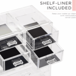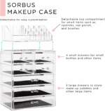 Elevate your artistry with the Sorbus Acrylic Makeup Organizer. Created with professional makeup artists in mind, this cosmetic organizer ensures quick access, optimal organization, and durable travel protection. This versatile set includes 3 large drawers, 4 small drawers, and 16 slots. The durable clear construction helps you find your items instantly, saving you valuable time during a busy morning rush. It is an essential tool for showcasing expertise and achieving flawless results.