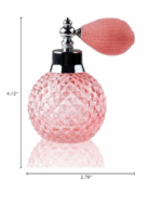 Describtion: Color: Pink Capacity: 100ml Dimensions: Total length 10.5cm, bottle area Approx 6 * 7cm Colour: Pink Material: K9 Crystal Included in the Package: 1 x Pink Perfume Bottle