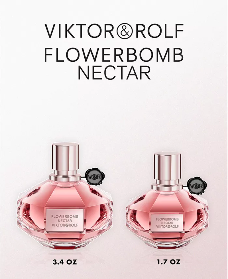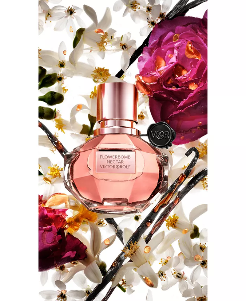 Viktor & Rolf Flowerbomb Nectar Eau de Parfum Spray is a floral vanilla perfume that is a sensual blend of irresistible flowers including orange blossom and jasmine with juicy blackcurrant. This intense women’s perfume also uses explosive tonka bean and warm patchouli oil to round out the fragrance.