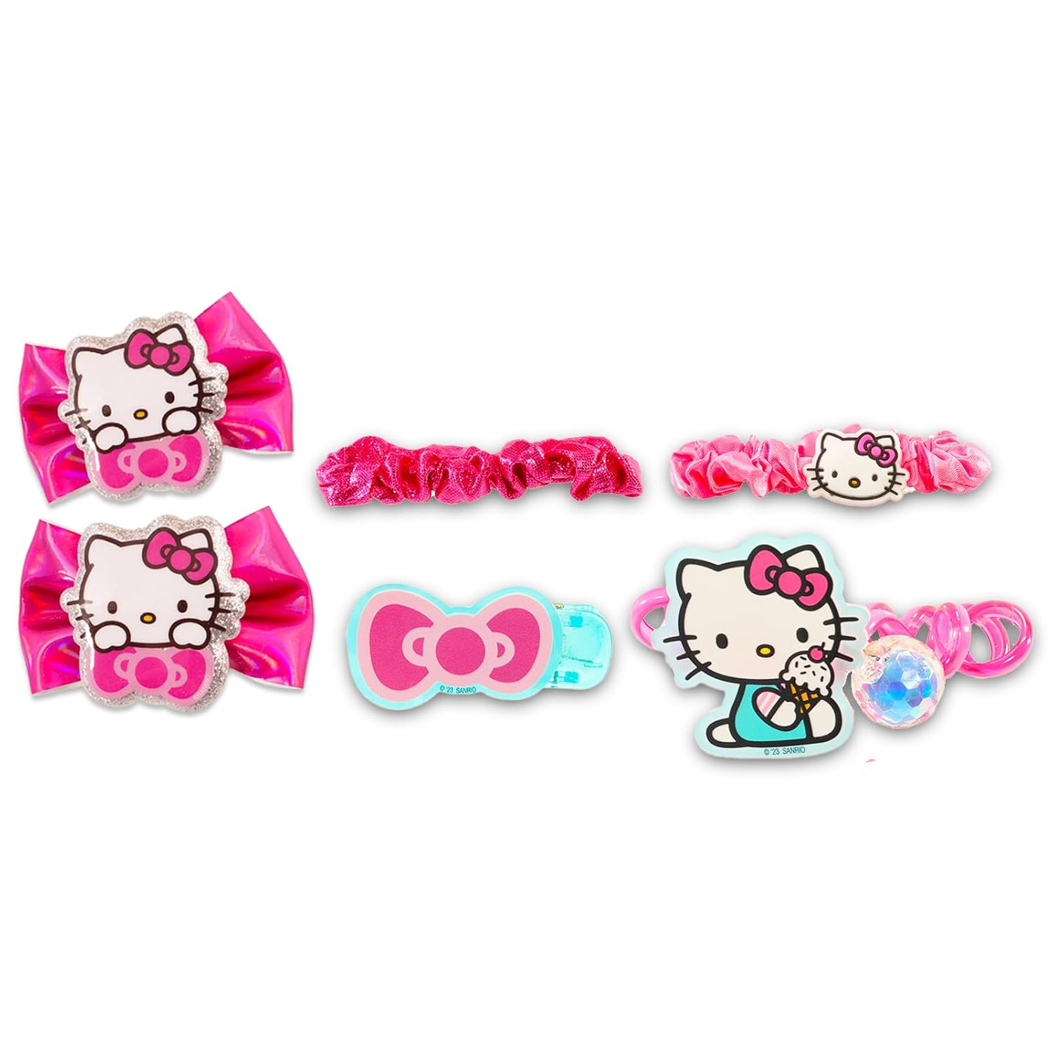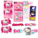 Hello Kitty Hair Accessories Set for Kids – Bundle with 2 Bows, 3 Elastics and 1 Clip, Tattoos, and More | Hello Kitty Accessories for Girls This Hello Kitty accessories set contains 2 bows, 3 elastics and 1 clip. Great for all fans of Hello Kitty, this hair accessories set is great to use as party favors, goodie bag fillers, loot bag stuffers, part of a gift basket, and more. Sure to be a hit with Hello Kitty fans of all ages, these Hello Kitty hair and dress up accessories will make a great addition to any dress up parties and the assorted styles will allow for endless combinations of fun looks! Officially licensed Hello Kitty accessories for toddlers also includes bonus Hello Kitty tattoos and a Beach Kids cat door hanger.