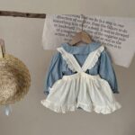 Beige Skirt, Blue Romper, Set |