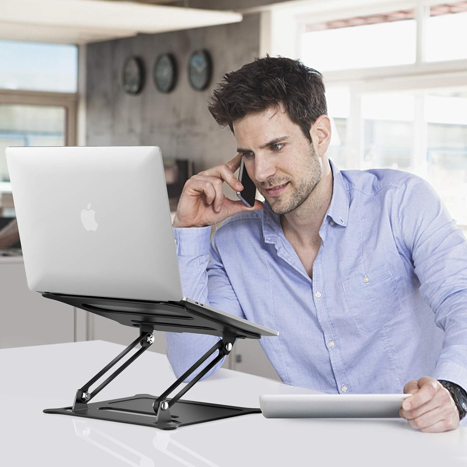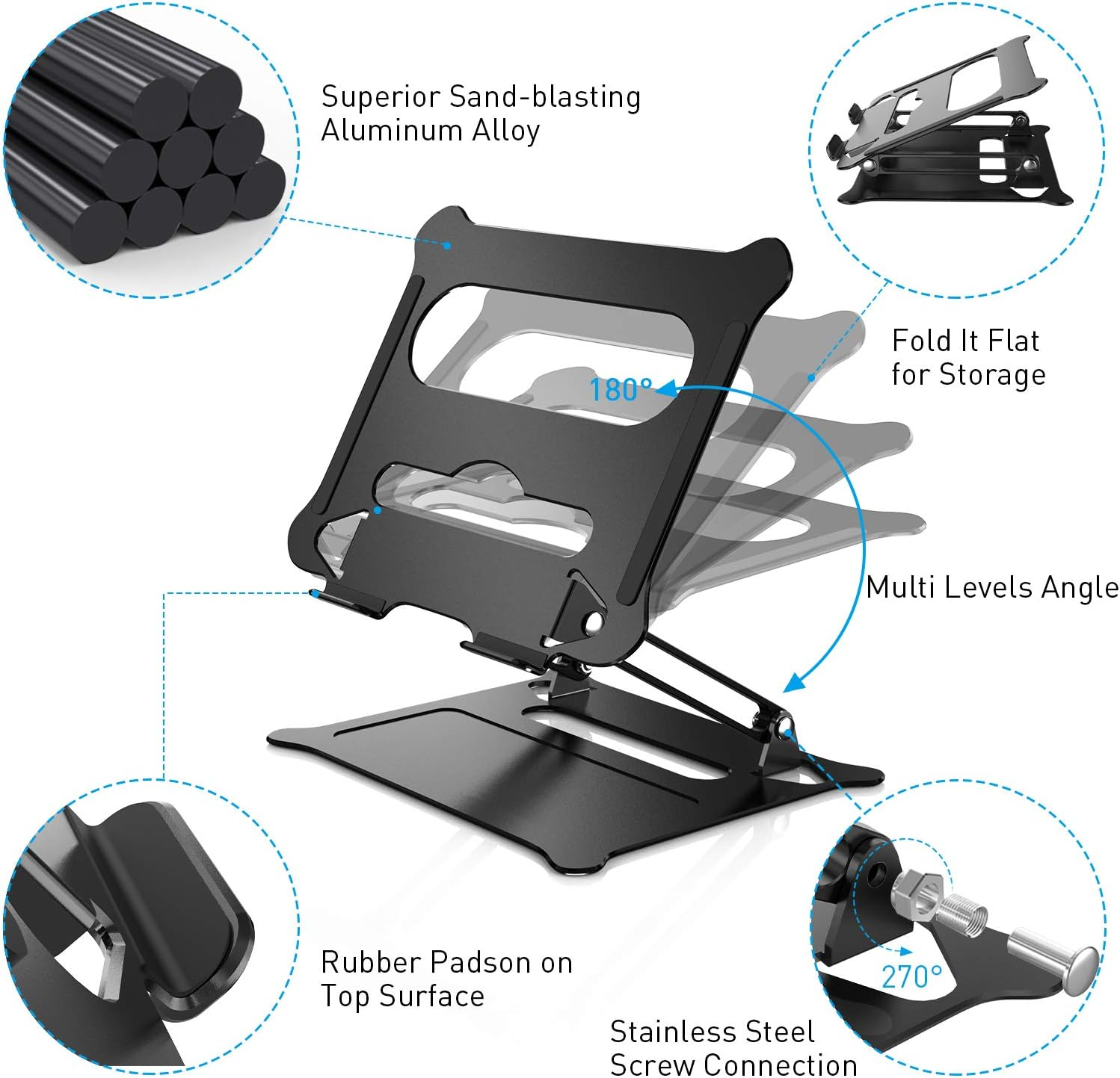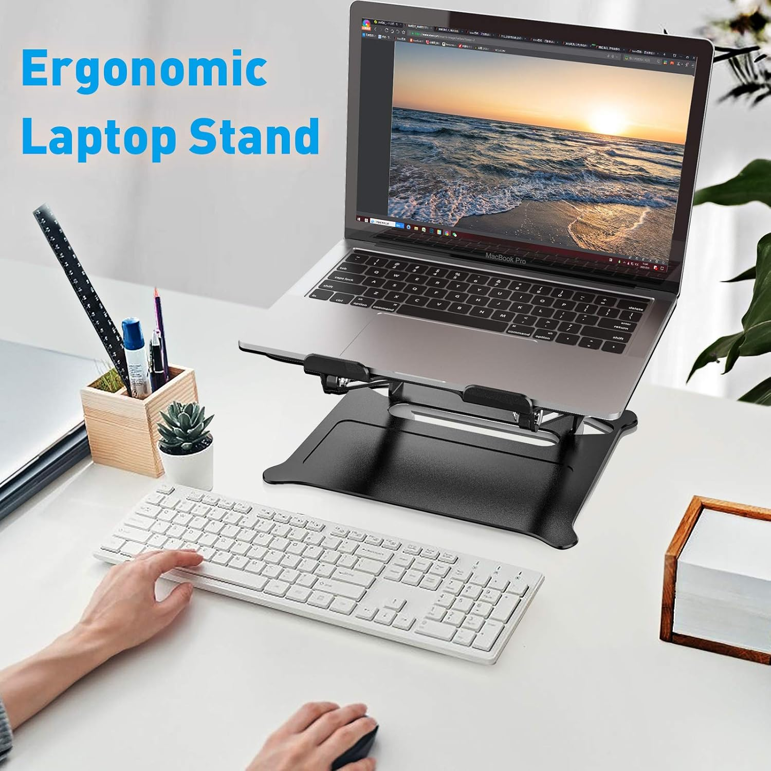 Laptop Stand offers you an elevated viewing angle and get rid of neck or shoulder pain, the best choice for you to use laptop in long time.