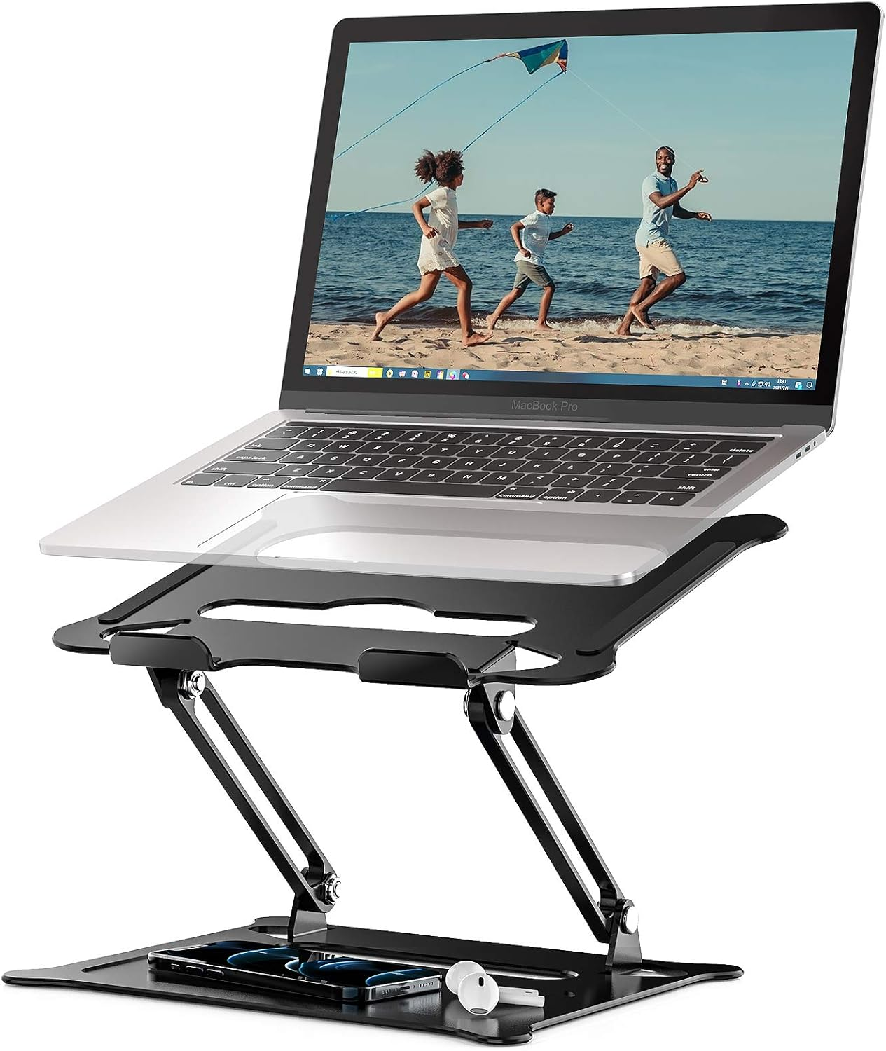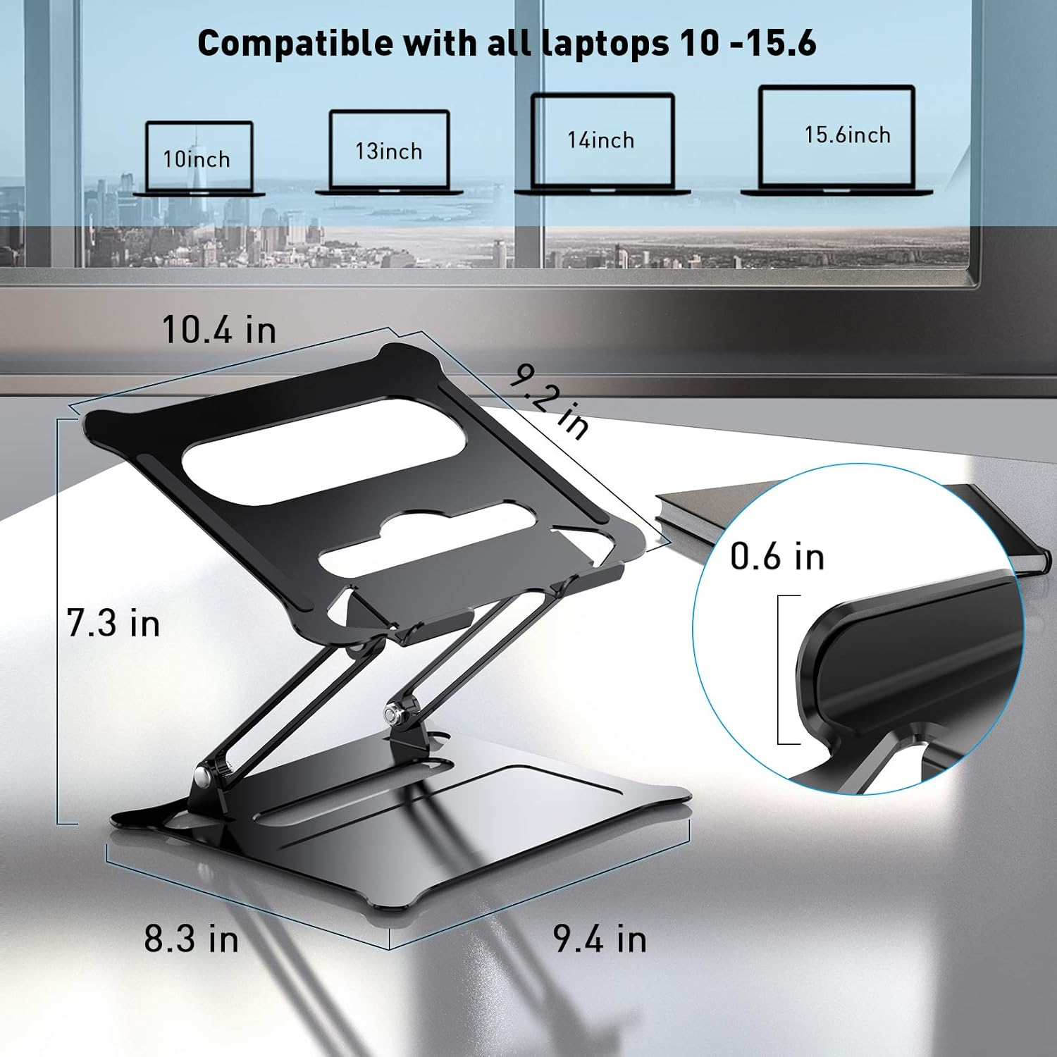 Non-slip silicone pads on the stand top and the bottom prevent the bottom of your laptop from being scratched . keep it in a position. The protective hooks further ensure your computer does not slide off the stand.