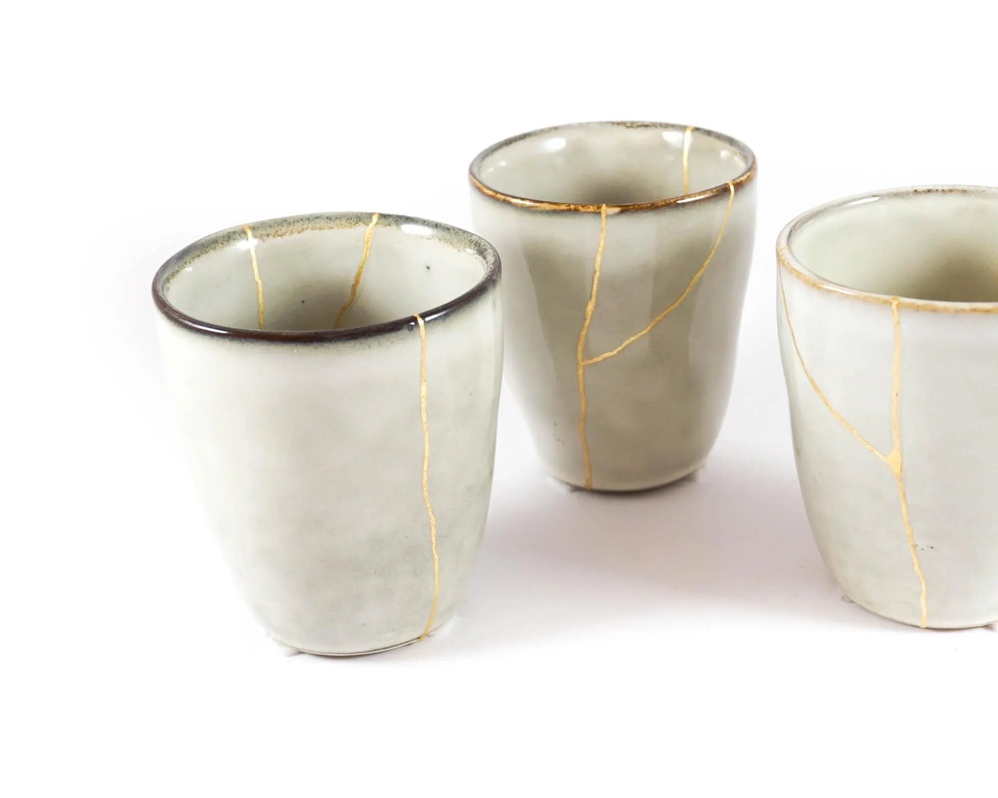 Light grey ceramic cup with golden decoration inspired by the Japanese art of Kintsugi. The golden veins highlight imperfection and beauty, making this piece a unique item for everyday use or as a symbolic gift. Perfect for lovers of Japanese aesthetics and minimalist design, it adds elegance and meaning to tea time or any relaxing moment.