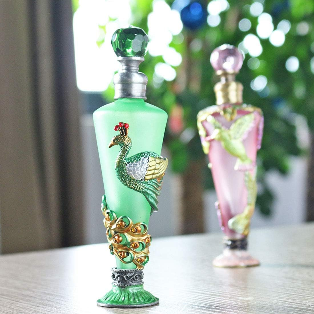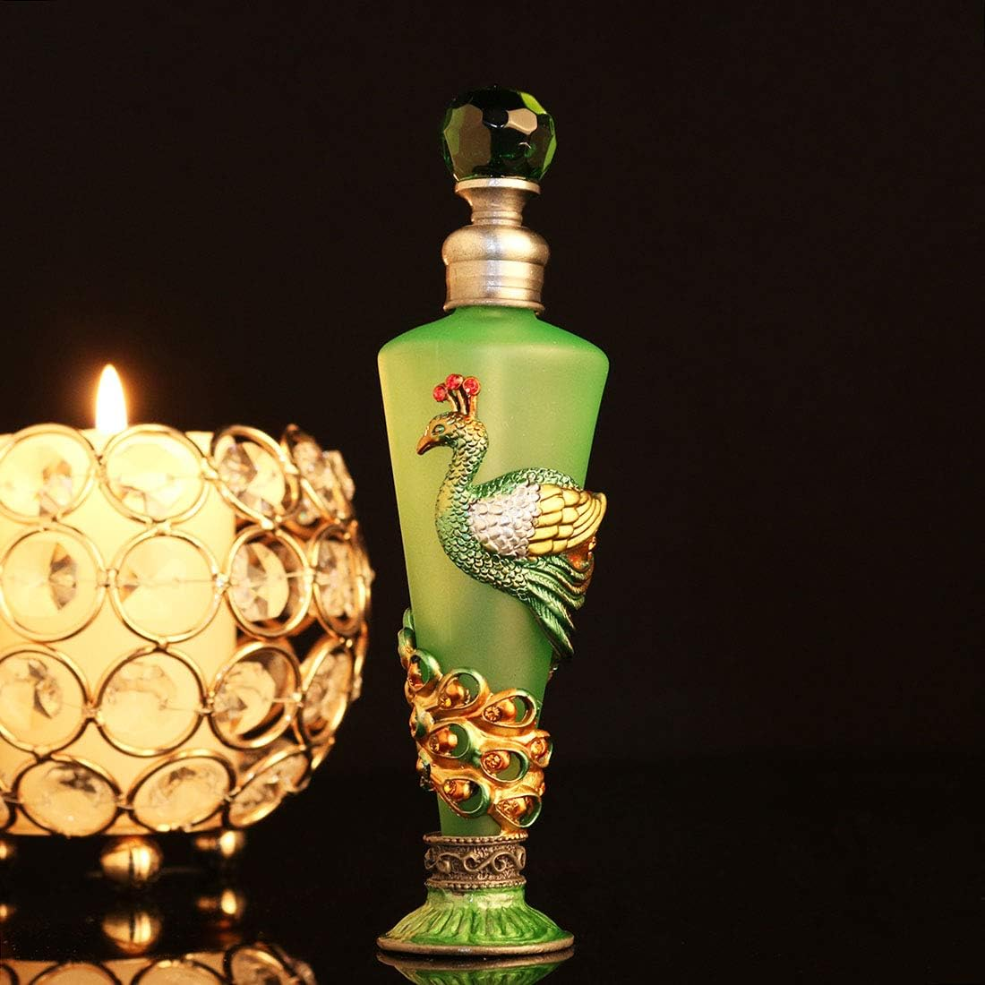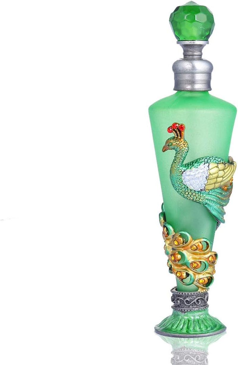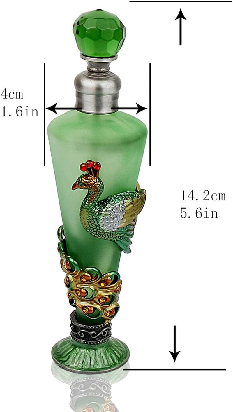 Peacock Decorative Glass Perfume Bottle Jeweled Enameled Fancy Crystal Perfume Holder Container Scent Bottles Empty Refillable(Green,35Ml)