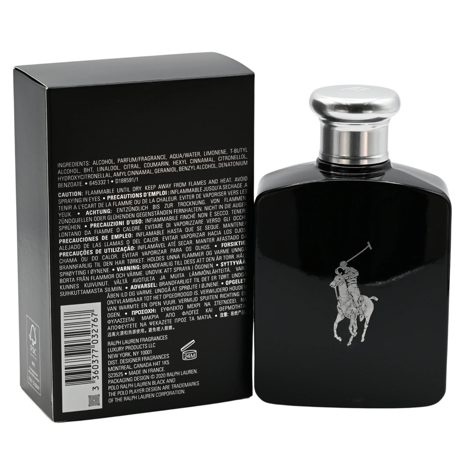 The Ralph Lauren Polo Black eau de toilette is a woody aromatic fragrance for men. Polo Black was launched in 2005. The nose behind this fragrance is Pierre Negrin. The fragrance features sandalwood tonka bean patchouli mango sage tangerine lemon and wormwood.